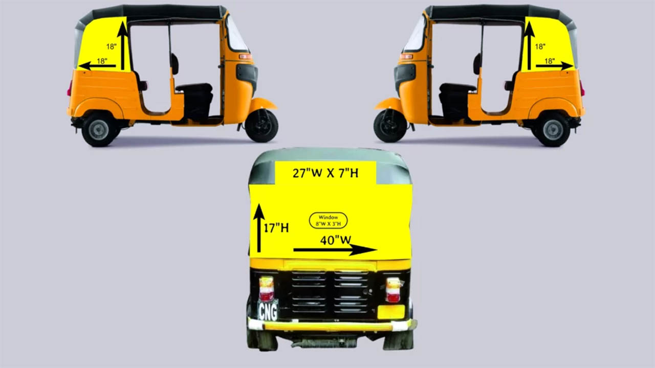 Tattoo back-side advertisement is a very beneficial form of advertisement for enterprises targeting local markets. A three-wheeler auto rickshaw back presents the most sought-after advertising area in busy metropolitan cities with high traffic and excellent visibility.