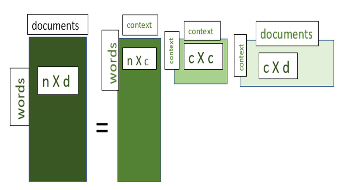 - Singular Value Decomposition (SVD): Dimensions within the document-term matrix are reduced by SVD, representing important relationships.