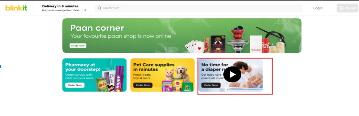 A leading Indian instant delivery service, providing groceries, fresh produce, household essentials, and more. Blinkit ensures fast delivery, often within minutes, through its hyperlocal network, making shopping convenient for customers in major cities.