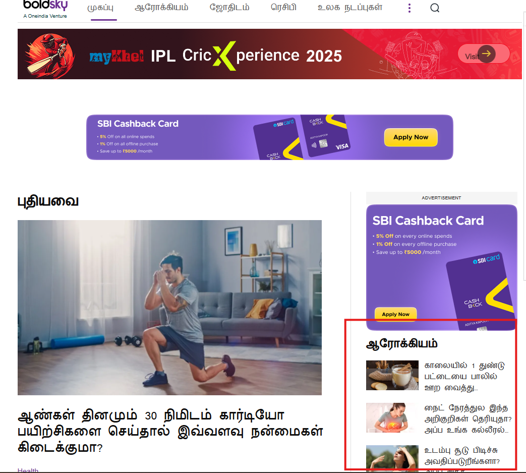 A lifestyle and health website in Tamil, focusing on wellness, fitness, beauty tips, and personal care, catering to the Tamil-speaking audience. Bold Sky Tamil emphasizes holistic well-being and offers a variety of articles on living a balanced, healthy life.