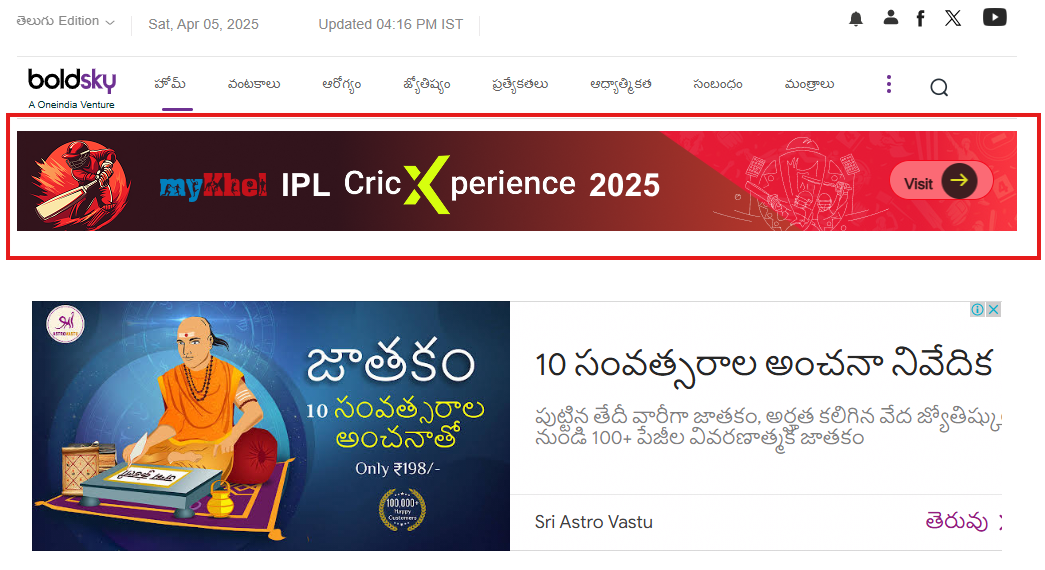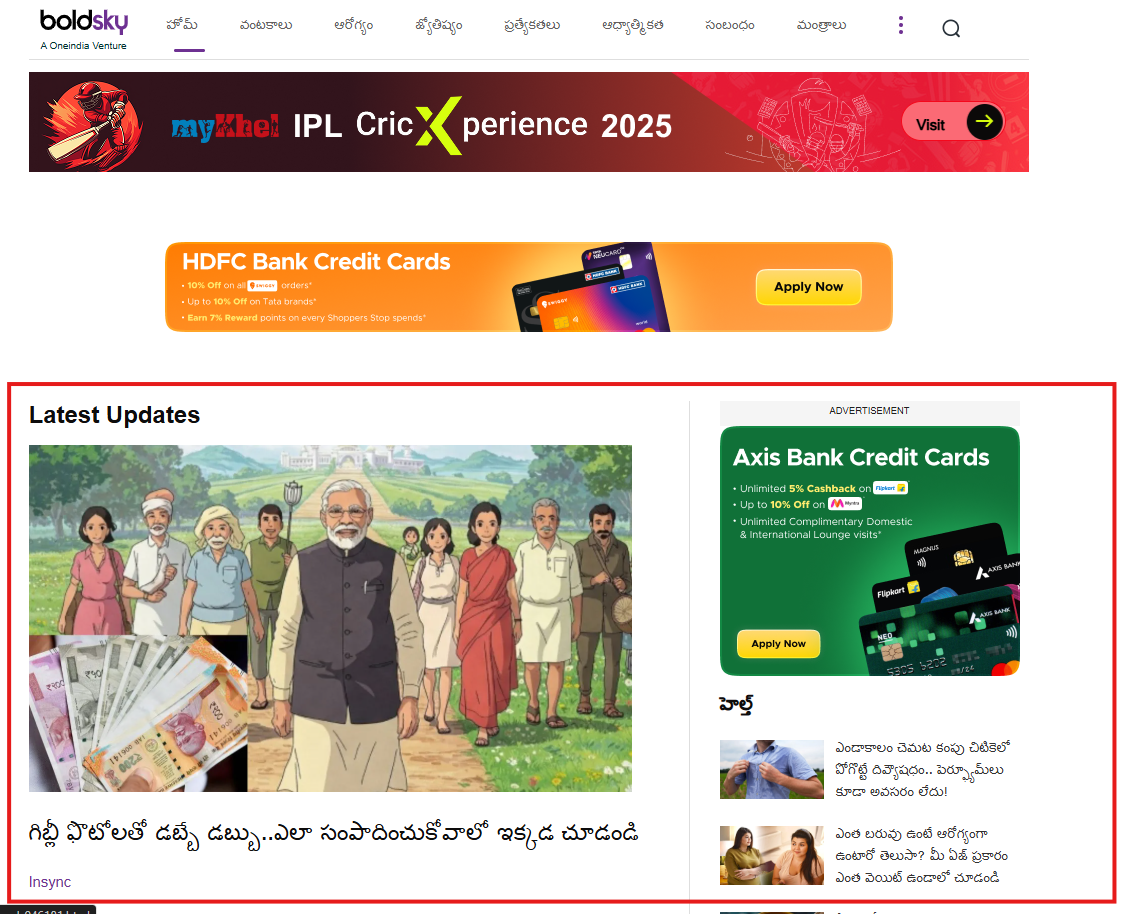 A health and lifestyle website in Telugu, Bold Sky covers topics like wellness, fitness, relationships, nutrition, and mental well-being for Telugu-speaking audiences. It also offers advice on self-care, wellness routines, and healthy living tailored to regional preferences.