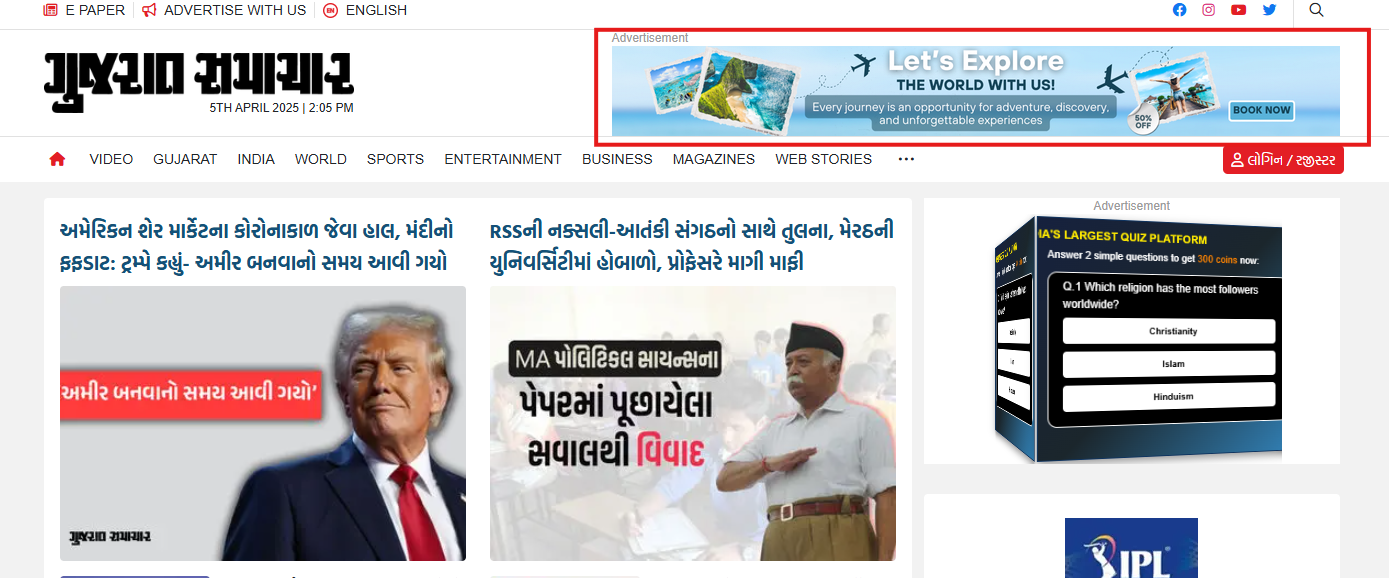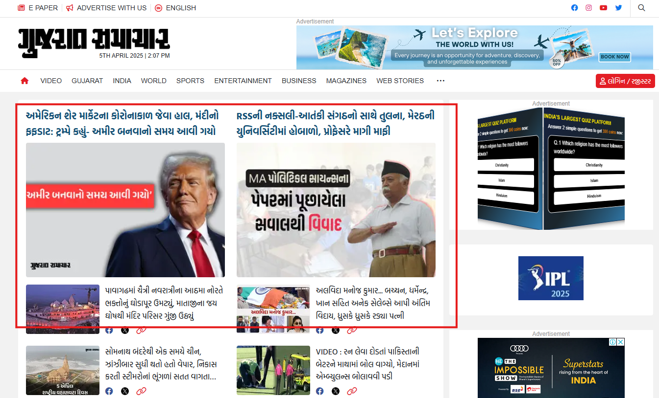 A leading Gujarati daily that covers national, international, and regional news, business updates, entertainment, and more for the Gujarati-speaking community. It is known for its strong presence in Gujarat, providing readers with timely, well-researched news in print and digital formats.