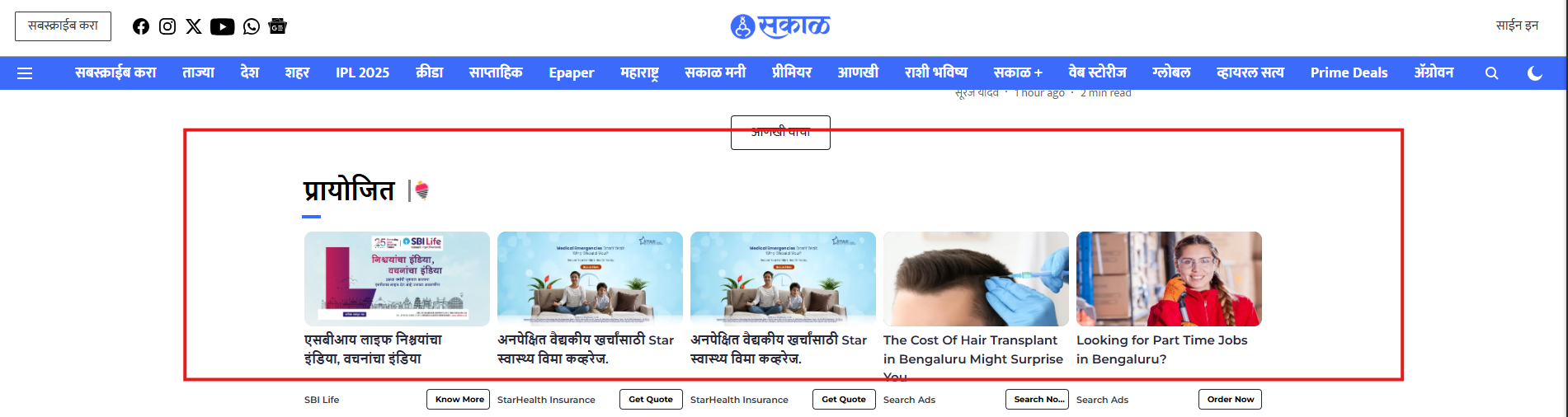A leading Marathi-language daily newspaper, Sakaal Times focuses on news, business, entertainment, and culture with a regional perspective. The newspaper offers reliable updates on local and national news, alongside a range of topics in politics, sports, and lifestyle.